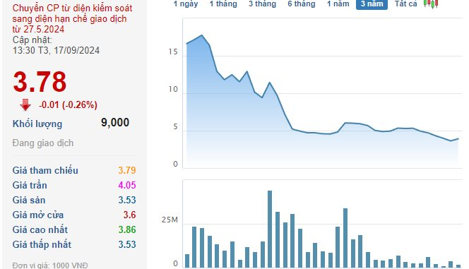 Cổ phiếu AAT trên sàn đạt mức 3.780 đồng/cp.