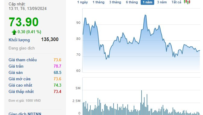 Trên thị trường, chốt phiên 12/9, thị giá VTP đạt 73.600 đồng/cp.