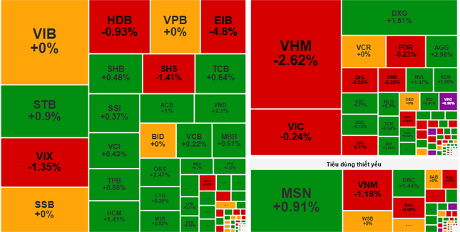Tuy nhiên, áp lực bán vẫn hiện hữu trong phiên giao dịch, với nhiều cổ phiếu lớn như VHM giảm 2,62% ảnh hưởng tiêu cực đến chỉ số chính.