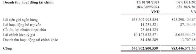 Việc sở hữu “núi” tiền gửi lên đến hàng chục nghìn tỷ cũng đem lại khoản lãi đều đặn cho VEAM. Trong 9 tháng qua, doanh nghiệp thu lãi hơn 636 tỷ đồng, tương đương lãi gần 2,4 tỷ đồng mỗi ngày. .