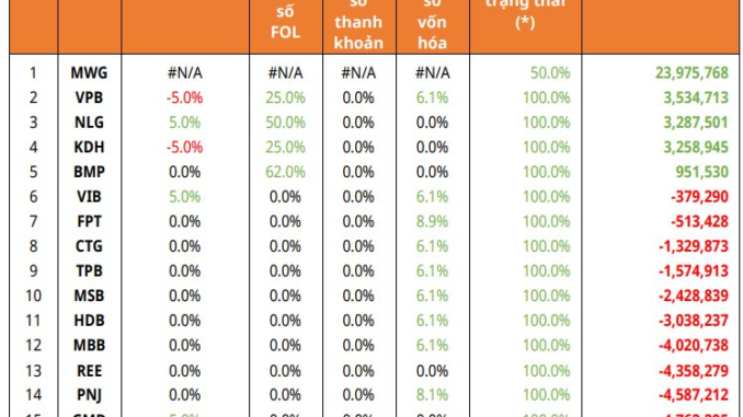 Nhóm phân tích MASVN dự báo VHM và SSB sẽ dẫn đầu danh sách mua vào của các quỹ, với khối lượng lần lượt khoảng 1,4 triệu cổ phiếu và 980 nghìn cổ phiếu. Ngược lại, VPB có khả năng sẽ bị bán ra hơn 3 triệu cổ phiếu, trong khi POW cũng có thể chịu áp lực bán với hơn 840 nghìn cổ phiếu.