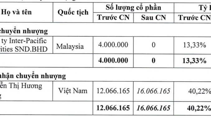 Trong thông báo mới nhất, CTCP Chứng khoán Saigonbank Berjaya (SBBS) đã công bố giao dịch thoả thuận 4 triệu cổ phần trong ngày 4/10, trong đó bên mua là Chủ tịch HĐQT SBBS Nguyễn Thị Hương Giang, bên bán là Công ty Inter-Pacific Securities Sdn Bhd (Malaysia).