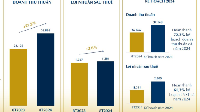 Kết quả, LNST 8 tháng đạt 1.281 tỷ đồng, tăng gần 3% so với cùng kỳ và hoàn thành 61% mục tiêu đặt ra cả năm.