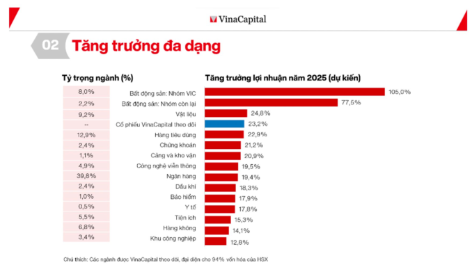 Sự chuyển dịch tăng trưởng GDP của Việt Nam từ việc được thúc đẩy bởi các yếu tố bên ngoài trong năm 2024 sang các yếu tố nội tại vào năm 2025 sẽ có lợi cho thị trường chứng khoán, vì phần lớn hàng xuất khẩu của Việt Nam được sản xuất bởi các công ty FDI không được niêm yết trên thị trường chứng khoán trong nước.