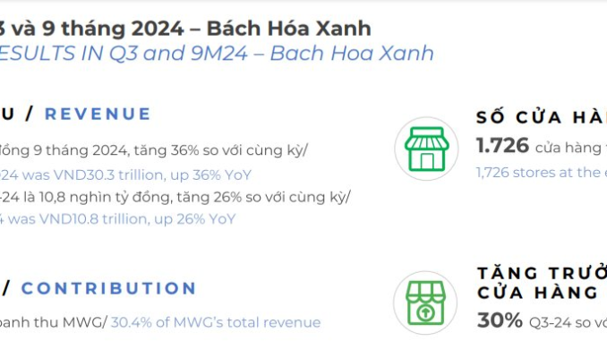 Tại buổi analyst meeting quý 3/2024 của CTCP Đầu tư Thế Giới Di Động (mã CK: MWG) , Chủ tịch HĐQT Nguyễn Đức Tài đánh giá chuỗi Bách Hóa Xanh vẫn khá non trẻ, do đó sự chú ý sẽ dành nhiều hơn cho hoạt động mở rộng cửa hàng bên cạnh vấn đề lợi nhuận.