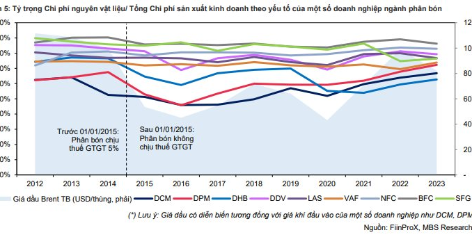 Chi phí nguyên vật liệu đầu vào thường chiếm tỷ trọng khá lớn trong tổng chi phí sản xuất kinh doanh của các doanh nghiệp phân bón, dao động từ 50% đến 80%. Các nguyên vật liệu đầu vào để sản xuất phân bón tương đối đa dạng, và chịu mức thuế suất thuế giá trị gia tăng từ 5% – 10%.