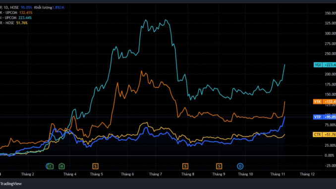 Nếu tính từ đầu năm, các cổ phiếu này phần lớn đạt mức tăng từ 50% tới hơn 95%. Riêng VTK bật tăng mạnh 130%, thậm chí VGI còn ghi nhận đà tăng tới 223% giá trị.