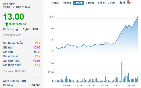 Giao dịch trên cổ phiếu bất động sản này cũng khá sôi động với hơn 1,3 triệu đơn vị “sang tay” chỉ tính đến 10h30. Tính riêng 1 tháng gần đây, cổ phiếu QCG đã tăng xấp xỉ 91% thị giá. Vốn hóa thị trường của công ty tương ứng có thêm hơn gần 1.700 tỷ đồng chỉ sau 1 tháng, lên vượt mốc 3.500 tỷ đồng.