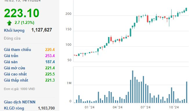 Đây tiếp tục là đỉnh giá mới cao nhất lịch sử niêm yết của mã cổ phiếu này.