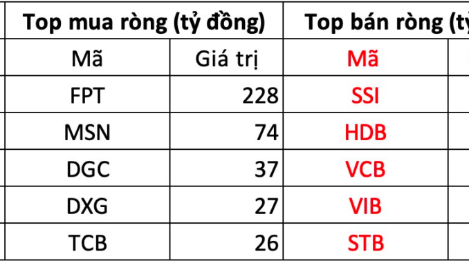 Tại chiều mua, cổ phiếu FPT tiếp tục là tâm điểm được khối ngoại mua mạnh nhất trên HoSE với giá trị hơn 228 tỷ đồng. Theo sau, MSN và DGC là hai mã tiếp theo được gom 74 và 37 tỷ đồng. Ngoài ra, POW và BID cũng được mua lần lượt 23 và 19 tỷ đồng.