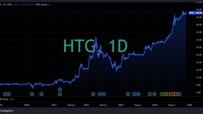Trên sàn chứng khoán, cổ phiếu HTG chốt phiên 27/11 dừng ở mốc 46.350 đồng/cp, chỉ thấp hơn khoảng 2% đỉnh lịch sử 47.200 đồng/cp tại ngày 24/10.