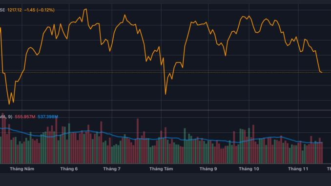 Áp lực cung dâng cao khiến VN-Index có thời điểm lùi sát ngưỡng 1.200 điểm trước khi “hồi” trở lại về cuối phiên. VN-Index đóng cửa phiên 18/11 giảm 1,45 điểm tại mốc 1.217 điểm. Nhìn xa hơn chỉ số đã mất gần 75 điểm (~ 6%) kể từ vùng điểm cao thiết lập vào hồi đầu tháng 10. Giảm sâu từ đỉnh, liệu đáy chứng khoán đã dần lộ diện?