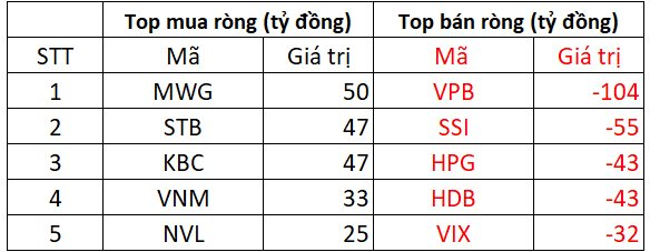Ngược lại, cổ phiếu MWG, STB và KBC là các cổ phiếu được khối ngoại mua mạnh nhất trên HOSE với giá trị mua ròng từ 47 tỷ tới 50 tỷ đồng. Nhà đầu tư ngoại cũng mua ròng VNM và NVL mỗi mã khoảng 25-33 tỷ đồng.