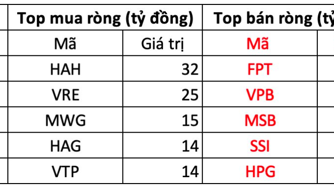 Tại chiều mua, cổ phiếu HAH được khối ngoại mua mạnh nhất trên HOSE với giá trị hơn 32 tỷ đồng. Theo sau, VRE và MWG là hai mã tiếp theo được gom 25 và 15 tỷ đồng. Ngoài ra, MWG và HAG cũng được mua 14 tỷ đồng.