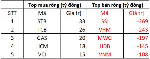 Ngược chiều, cổ phiếu STB, TCB, GAS,.. được khối ngoại mua ròng mạnh nhất song giá trị chỉ khoảng vài chục tỷ đồng.