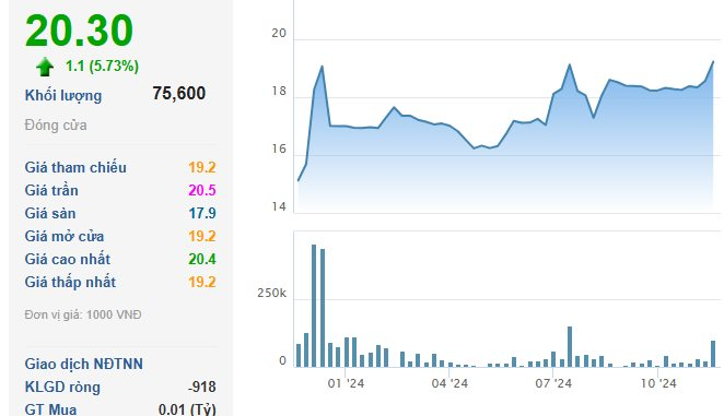 Trên thị trường chứng khoán, cổ phiếu VMD sau thông tin chốt cổ tức đã bất ngờ tăng vọt gần 6% trong phiên 21/12, qua đó tiến lên mức giá 20.300 đồng/cp. Đây đồng thời là vùng giá cao nhất trong hơn 1 năm trở lại đây mà cổ phiếu này đạt được (kể từ tháng 10/2023).