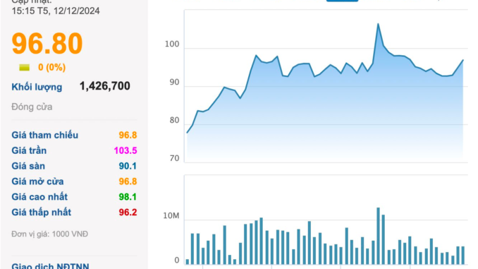 Trên thị trường, cổ phiếu PNJ kết phiên 12/12 ở mức giá 96.800 đồng/cp. Tạm tính theo mức thị giá này, con gái của Chủ tịch PNJ sẽ phải chi ra khoảng 400 tỷ đồng để hoàn tất giao dịch trên.