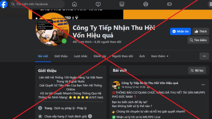 Công an Đà Nẵng dẫn tài khoản Facebook có tên “Công ty tiếp nhận thu hồi vốn hiệu quả” có hơn 6.300 người theo dõi những ngày gần đây đã đăng tải thông tin và clip giới thiệu dịch vụ “hỗ trợ lấy lại tiền” đã bị lừa trong vụ Tiktoker Mr Pips.