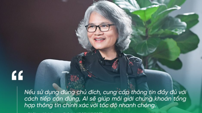 “Nếu ngày xưa chúng ta phải học những trường đại học danh tiếng, có những người thầy giỏi hay tiếp cận được những tài liệu rất đắt mới có được nhiều thông tin, thì AI ra đời giúp tất cả đều “open” với một mức chi phí rất thấp. Nếu sử dụng đúng chủ đích, cung cấp thông tin đầy đủ với cách tiếp cận đúng, AI sẽ giúp môi giới chứng khoán tổng hợp thông tin chính xác với tốc độ nhanh chóng”, bà Hương cho biết.