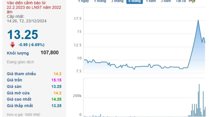 Cụ thể, chỉ trong chưa đầy 1 tháng, VCA tăng bốc 107% lên đỉnh 17.600 đồng/cp, rồi nhanh chóng quay đầu giảm sàn 5/7 phiên gần nhất. Thị giá mất gần 25% chỉ sau vài phiên giao dịch, hiện còn 13.250 đồng/cp.