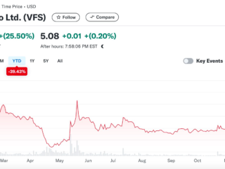 Cổ phiếu tăng “bốc đầu” đẩy giá trị vốn hoá VinFast lên 11,85 tỷ USD, xếp thứ 6 trong danh sách các công ty chuyên sản xuất ô tô điện giá trị nhất thế giới, chỉ xếp sau Tesla, Xiaomi, Li Auto, Rivian và XPeng.