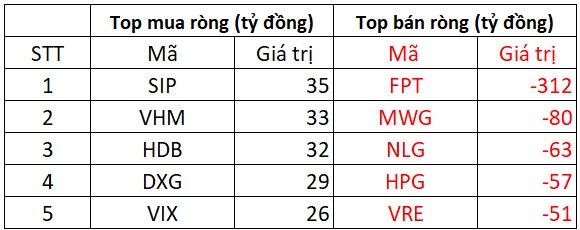 Tại chiều bán, cổ phiếu FPT bất ngờ chịu áp lực bán ròng đột biến của khối ngoại với giá trị 312 tỷ đồng. Bên cạnh đó, loạt cổ phiếu khác cũng bị “xả” mạnh bao gồm: MWG (-80 tỷ); NLG (-63 tỷ) và HPG (-57 tỷ),…