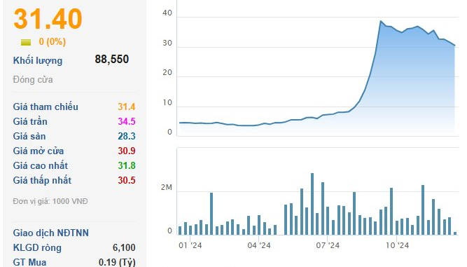 Hiện, cổ phiếu CTP kết phiên 17/12 dừng ở mức 31.400 đồng/cp, thấp hơn 26% kể từ đỉnh hồi giữa tháng 9 vừa qua. Nếu tính từ đầu năm, thị giá CTP đang chứng kiến mức tăng gần 600%.
