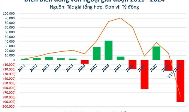 Về dòng tiền trên thị trường chứng khoán, câu chuyện chủ đạo trong năm 2024 là hiện tượng nhà đầu tư nước ngoài bán ròng kỷ lục bất chấp việc Việt Nam tiến gần hơn với mục tiêu nâng hạng theo tiêu chuẩn FTSE Russell sau khi gỡ bỏ quy định về ký quỹ trước giao dịch (prefunding). Trong 11 tháng, nhà đầu tư nước ngoài rút ròng gần 90.000 tỷ đồng khỏi chứng khoán Việt Nam và chưa có dấu hiệu dừng lại. Lực cầu đối ứng từ khối ngoại bán ra là nhóm nhà đầu tư cá nhân trong nước.
