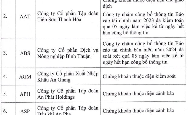 Đáng chú ý, kết quả kinh doanh lao dốc cũng khiến nhiều mã cổ phiếu bị cắt margin trong quý 1, có thể kể tới như AAM, CMX, D2D, DQC, EVE, FCM, HAS, HID, HNA, ITD, LDG, NT2, PGV, QCG, SBV, SGR, SMA, SPM, STK, TLH, TMT, TTE, VPH.… Nguyên nhân đều do lợi nhuận của cổ đông công ty mẹ/LNST trên BCTC hợp nhất soát xét bán niên năm 2024 là số âm.