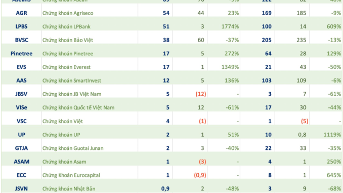 Chứng khoán Agribank (Agriseco) công bố doanh thu hoạt động tăng trưởng 11% lên 100 tỷ, chiếm hơn 41 tỷ là lãi từ cho vay và phải thu. Kết quả, LNTT tăng trưởng 23% lên 54 tỷ, nâng lãi trước thuế cả năm 2024 lên con số 169 tỷ, giảm khoảng 9%.
