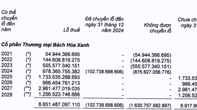Công ty cổ phần Đầu tư Thế giới Di động (mã: MWG) đã công bố BCTC quý 4/2024, đáng chú ý là việc CTCP Thương mại Bách Hóa Xanh không còn ghi nhận lỗ thuế trong năm 2024. Trước đó, Bách Hóa Xanh bắt đầu ghi nhận lợi nhuận 7 tỷ đồng trong quý 2 và 90 tỷ đồng trong quý 3/2024.