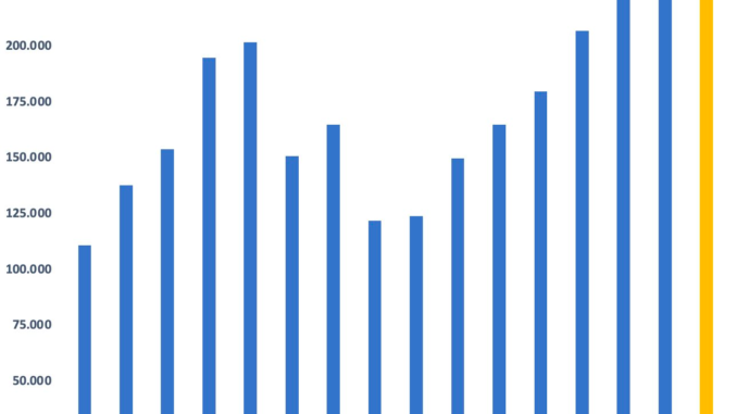 Đáng chú ý, dư nợ margin tiếp tục tăng cao lên mức kỷ lục mới trong bối cảnh giao dịch trên thị trường ngày càng ảm đạm. Giá trị khớp lệnh trên HoSE liên tục có xu hướng giảm qua từng tháng xuống dưới 12.000 tỷ đồng vào tháng 12 năm ngoái. Con số này tiếp tục giảm mạnh trong tháng đầu năm 2025 khi tâm lý nghỉ Tết bao trùm.