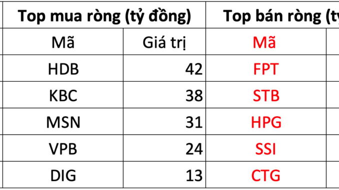 Tại chiều mua, cổ phiếu HDB được khối ngoại mua mạnh nhất trên HOSE với giá trị hơn 42 tỷ đồng. Theo sau, KBC và MSN là hai mã tiếp theo được gom 38 và 31 tỷ đồng. Ngoài ra, VPB và DIG cũng được mua lần lượt 24 và 13 tỷ đồng.