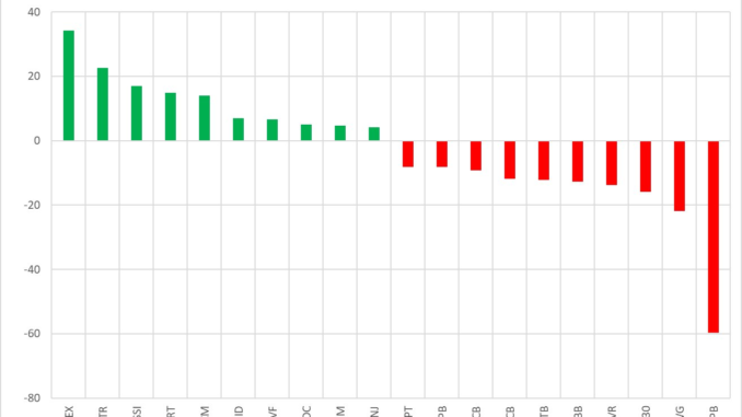 Cụ thể, nhóm CTCK bán ròng mạnh nhất tại VCB và MWG với lần lượt 60 tỷ và 22 tỷ. Hai mã FUEMAV30 và GVR cũng bị bán ròng lần lượt 16 tỷ và 14 tỷ. Các cổ phiếu bị bán ròng trong phiên hôm nay còn có MBB, STB, TCB…