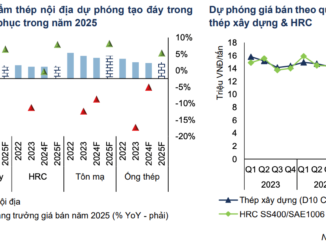 Sản lượng sản xuất và tiêu thụ thép năm 2025 dự báo đạt lần lượt 32,9 triệu tấn, tăng 12% và 32,5 triệu tấn, tăng 11% so với năm 2024 nhờ tăng trưởng giá trị xây dựng dân dụng và tồn kho ngành thấp. Tăng trưởng bán hàng nội địa và xuất khẩu là 14% và 3%. Giá bán sản phẩm thép nội địa dự báo tăng từ 5% – 8% trong năm 2025.