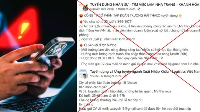 Vào thời điểm cận Tết Nguyên đán Ất Tỵ, nhu cầu tìm việc làm của người lao động tăng cao. Nắm bắt tâm lý này, các đối tượng xấu đã mạo danh THACO và các Tập đoàn thành viên (TĐTV) để thực hiện hành vi lừa đảo tuyển dụng, gây thiệt hại cho ứng viên và ảnh hưởng uy tín của THACO.