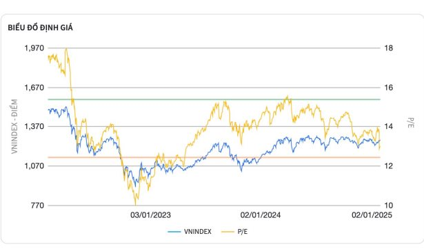 Tính tới ngày 5/02, PE của thị trường là 12,58 rất gần với mức -1 độ lệch chuẩn 3 năm là 11,96 ; đối với PB thị trường đã giảm về 1,63 sát với mức -1 độ lệch chuẩn 3 năm là 1,56. Đội ngũ phân tích nhận định điều này phản ánh việc thị trường đang trở lên rẻ hơn đáng kể và chỉ còn thiếu các nền tảng về tâm lý của nhà đầu tư trong nước và nước ngoài để thúc đẩy thị trường trở về mức trung bình.