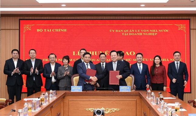 Lãnh đạo Bộ Tài chính và Ủy ban quản lý vốn Nhà nước tại doanh nghiệp tại lễ chuyển giao.