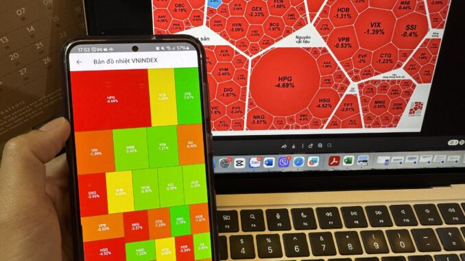 Sắc đỏ bao phủ nhiều nhóm ngành, bất chấp nỗ lực phục hồi từ một số cổ phiếu dòng ngân hàng, chứng khoán, đầu tư công… Điểm sáng là thanh khoản tăng mạnh cho thấy sự giằng co quyết liệt giữa bên mua và bên bán nhưng xu hướng giảm vẫn chiếm ưu thế.