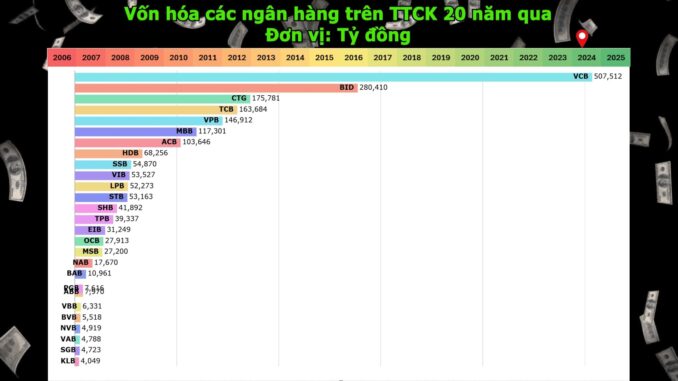 Thời điểm hiện tại, Vietcombank là ngân hàng vốn hóa lớn nhất. Vietcombank bắt đầu lên sàn từ giữa năm 2009. Trong giai đoạn 2009-2014, vốn hóa Vietcombank và VietinBank bám đuổi nhau quyết liệt.