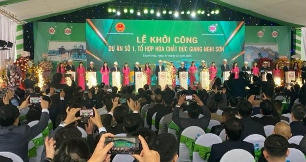 Hóa chất Đức Giang (HoSE: DGC) vừa tổ chức lễ khởi công dự án số 1 thuộc tổ hợp hóa chất Đức Giang – Nghi Sơn tại Khu Kinh tế Nghi Sơn, tỉnh Thanh Hóa vào sáng nay (17/2). Đây là dự án có vị trí gần hệ thống cảng nước sâu Nghi Sơn và mỏ đá vôi với trữ lượng lớn trong khu vực sẽ tạo điều kiện cho nguồn nguyên liệu sản xuất.
