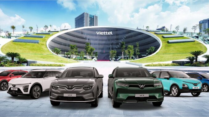 Chiều 18/2, VinFast tổ chức gian trưng bày các dòng xe điện tại trụ sở Tập đoàn để CBNV Viettel có thể trực tiếp tham quan, tìm hiểu các sản phẩm mới nhất của hãng.