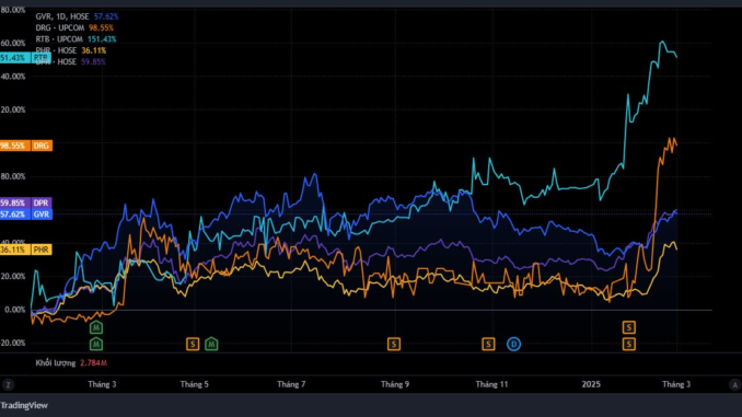 Cổ phiếu nhóm cao su đua nhau tăng tốc kể từ đầu năm.