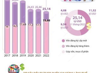 Tính đến 20/11/2022, tổng vốn đăng ký cấp mới, điều chỉnh và góp vốn mua cổ phần, mua phần vốn góp của nhà đầu tư nước ngoài đạt hơn 25,1 tỷ USD, bằng 95% so với cùng kỳ năm 2021.