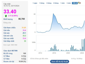 Từ vùng giá 9.000 đồng/cp hồi đầu năm nay, cổ phiếu HTL chứng kiến mức tăng vọt lên tới gần 270% giá trị, tức gấp gần 4 lần lên mức giá hiện tại.
