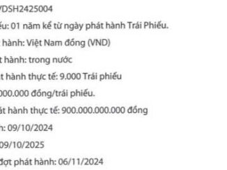 Chứng khoán Rồng Việt vừa hoàn tất đợt phát hành 9.000 trái phiếu mã VDSH2425004, tổng giá trị phát hành là 900 tỷ đồng, kỳ hạn 1 năm, dự kiến đáo hạn ngày 9/10/2025.