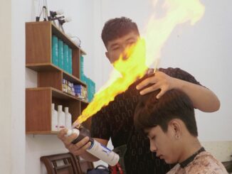 Thay vì cắt tóc bằng các công cụ truyền thống như kéo, tông đơ… anh Nguyễn Trọng Giàu chủ tiệm cắt tóc tại TP.HCM lại cắt tóc bằng lửa gây tò mò và thu hút nhiều giới trẻ.