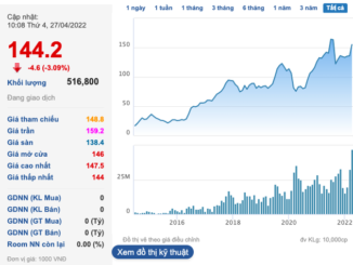 Ghi nhận, MWG đã tăng từ vùng 16.800 đồng/cp (năm 2014) lên mức giá 144.000 đồng/cp hiện tại, tương đương mức tăng hơn 8,5 lần. Nếu so với mức đỉnh 160.000 đồng/cp trước khi bước vào nhịp điều chỉnh chung trước áp lực bán tháo của toàn thị trường, thực tế thị giá MWG đã tăng 10 lần.