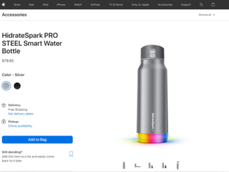 Bình nước thông minh của HidrateSpark hiện đang được bán trong các cửa hàng của Apple với giá khoảng 80 đô la. Bình nước được đồng bộ hóa với Apple Health cho phép người dùng tự động theo dõi lượng nước uống hàng ngày.