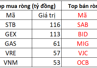 Một điểm tích cực trong phiên là khối ngoại tiếp tục mua ròng gần 1.100 tỷ đồng trên sàn HoSE, lực mua tập trung vào STB, GEX, GAS, VRE, VNM, PNJ…